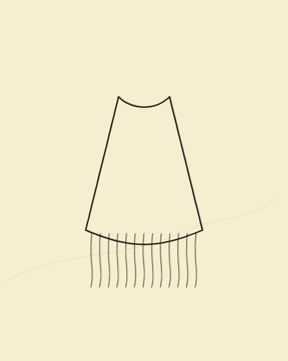 Fringe is best when the shape underneath is restrained. Let the hem move and keep everything else quiet.